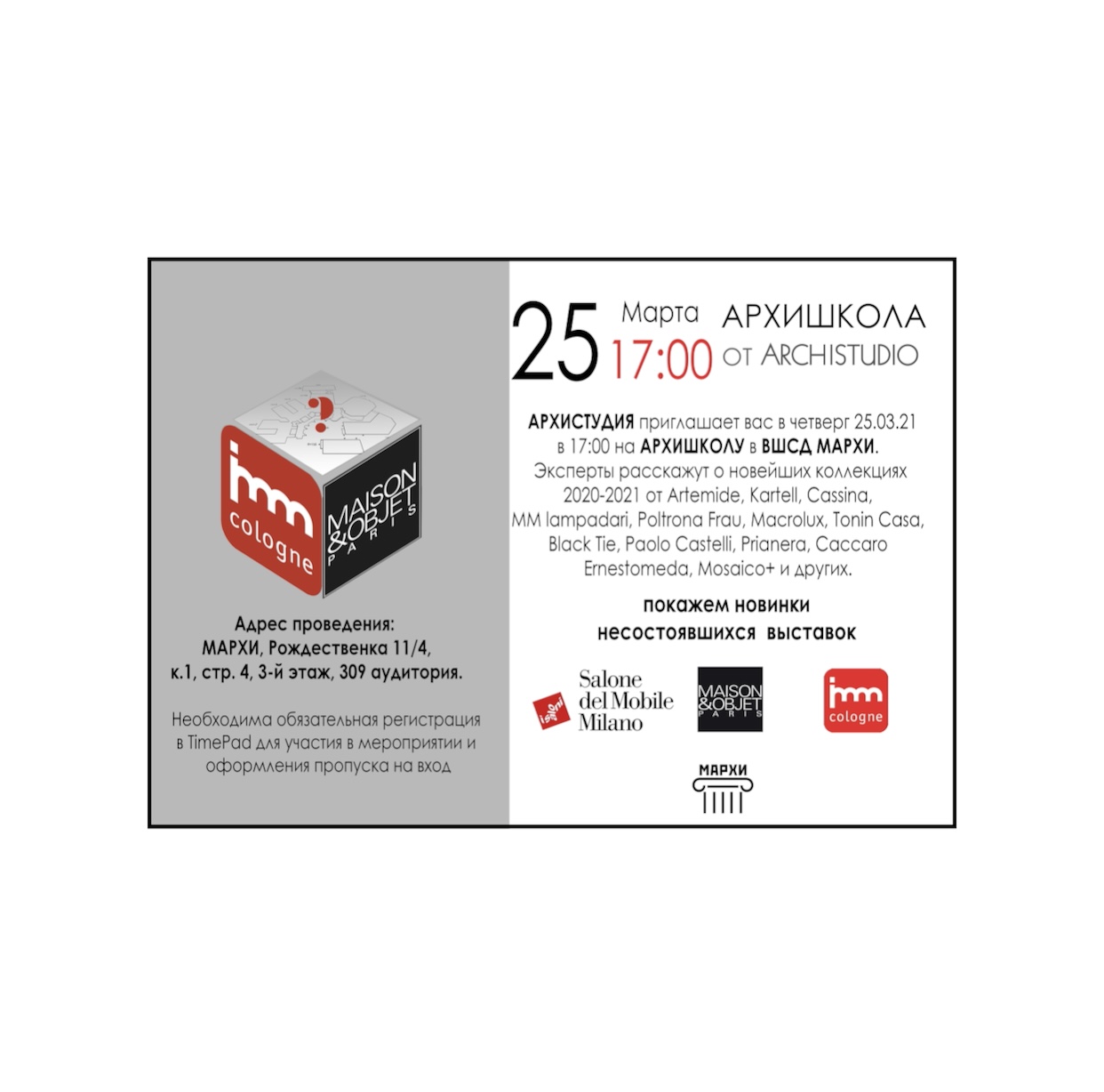 По вашим многочисленным просьбам делаем открытую Архишколу для всех желающих услышать и увидеть новинки с несостоявшихся выставок: iSaloni, Maison&Objet, IMM Cologne.
